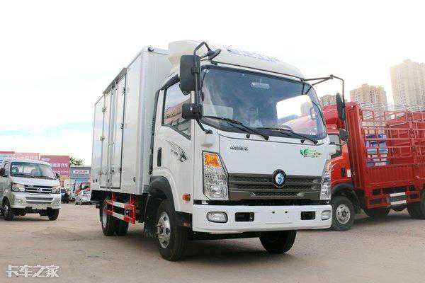 重汽王牌7系单排厢式轻卡,货厢长4.16米,车辆轴距为3360mm。相交于仓栅、栏板货厢,厢式货车在雨天能更好保护货物安全,不用费时间盖篷布与收篷布,相对省力。但是装载高度较为有限,并且使用机动叉车装货时也极为不方便。