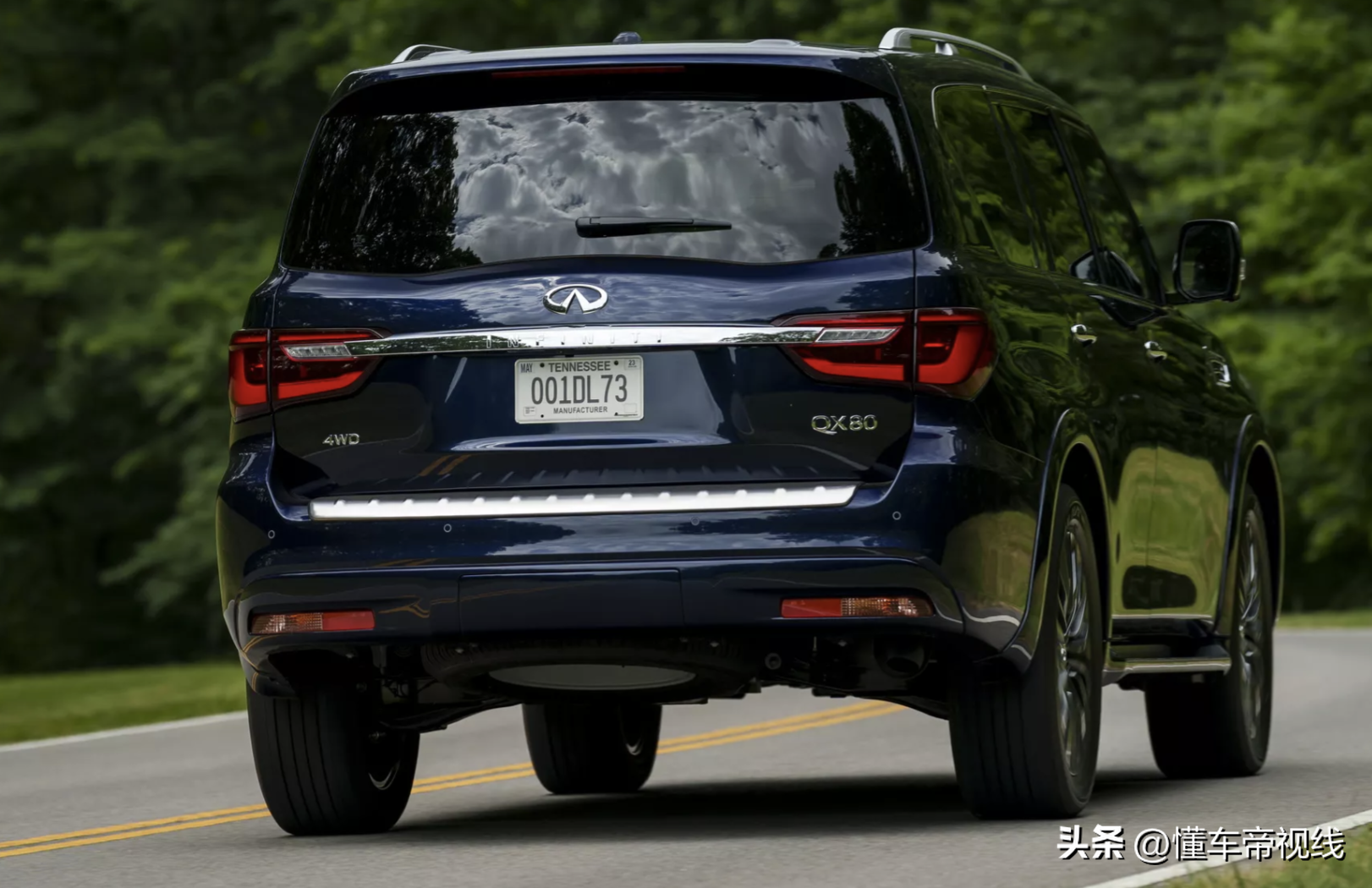 [懂车帝原创产品]日前,英菲尼迪正式发布了2024款英菲尼迪QX80。作为改款车型,2024款英菲尼迪QX80造型延续了老款车型风格,主要对配置进行调整。据悉,2024款英菲尼迪QX80共推出Luxe、PremiumSelect、Sensory三款配置车型,每款配置均提供两驱和四驱车型可选,售价区间为76045-90345美元,约合人民币55万-66万元。