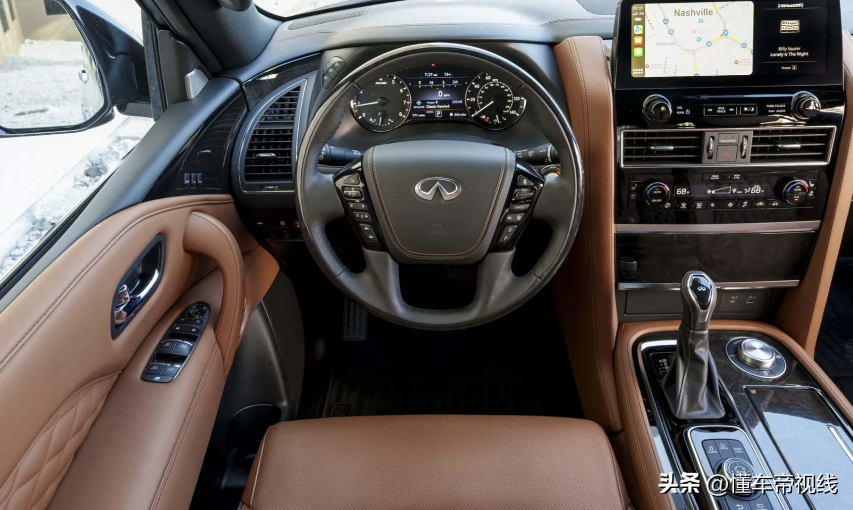 此外,2024款英菲尼迪QX80配备有12.3英寸中控屏幕,支持AppleCarPlay/AndroidAuto互联。动力部分,2024款英菲尼迪QX80继续搭载5.6升V8自然吸气发动机,最大功率为298千瓦,传动系统匹配7速自动变速箱,提供四驱系统可选。