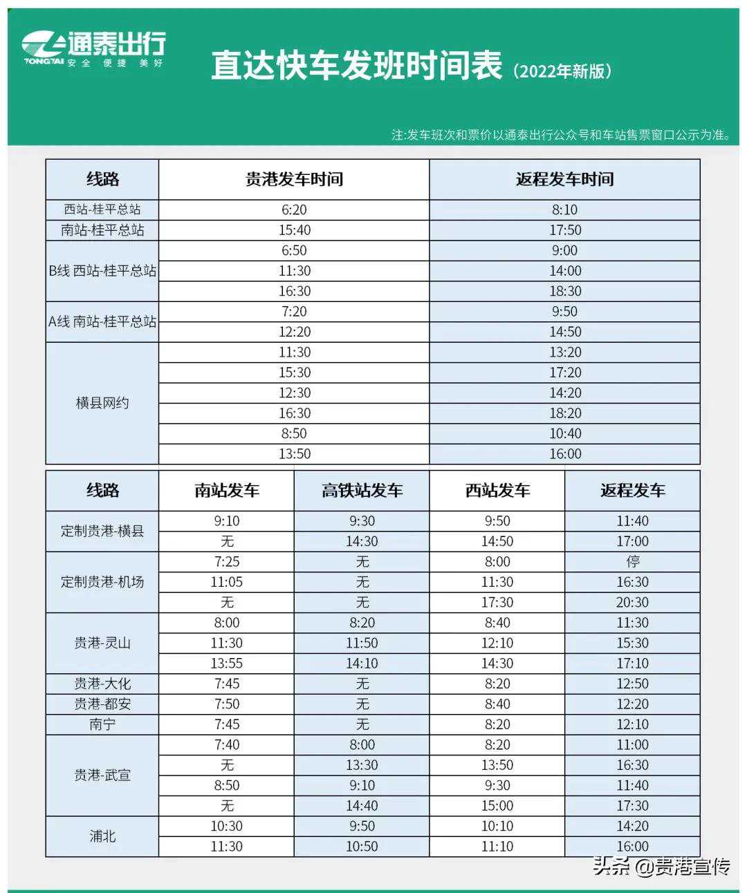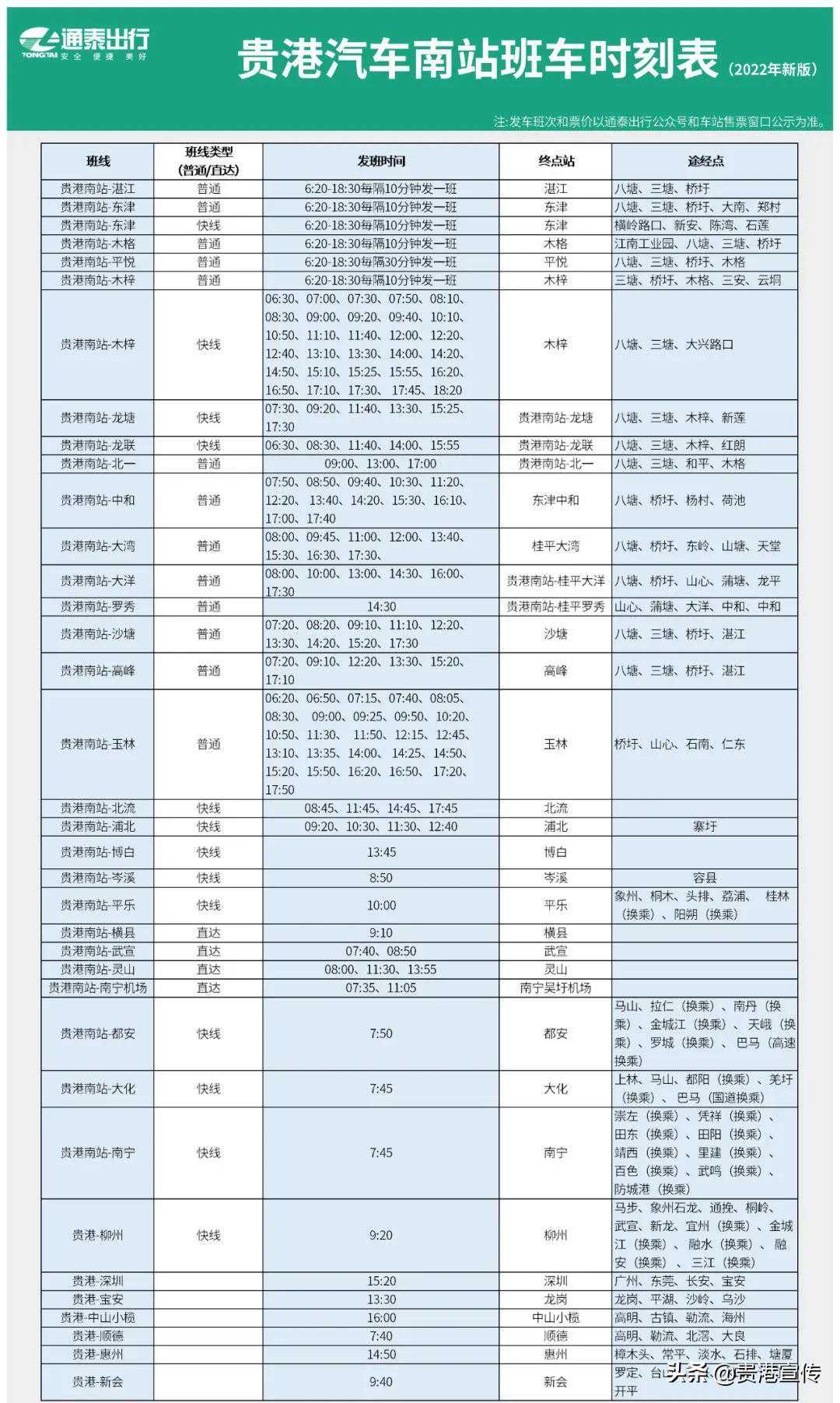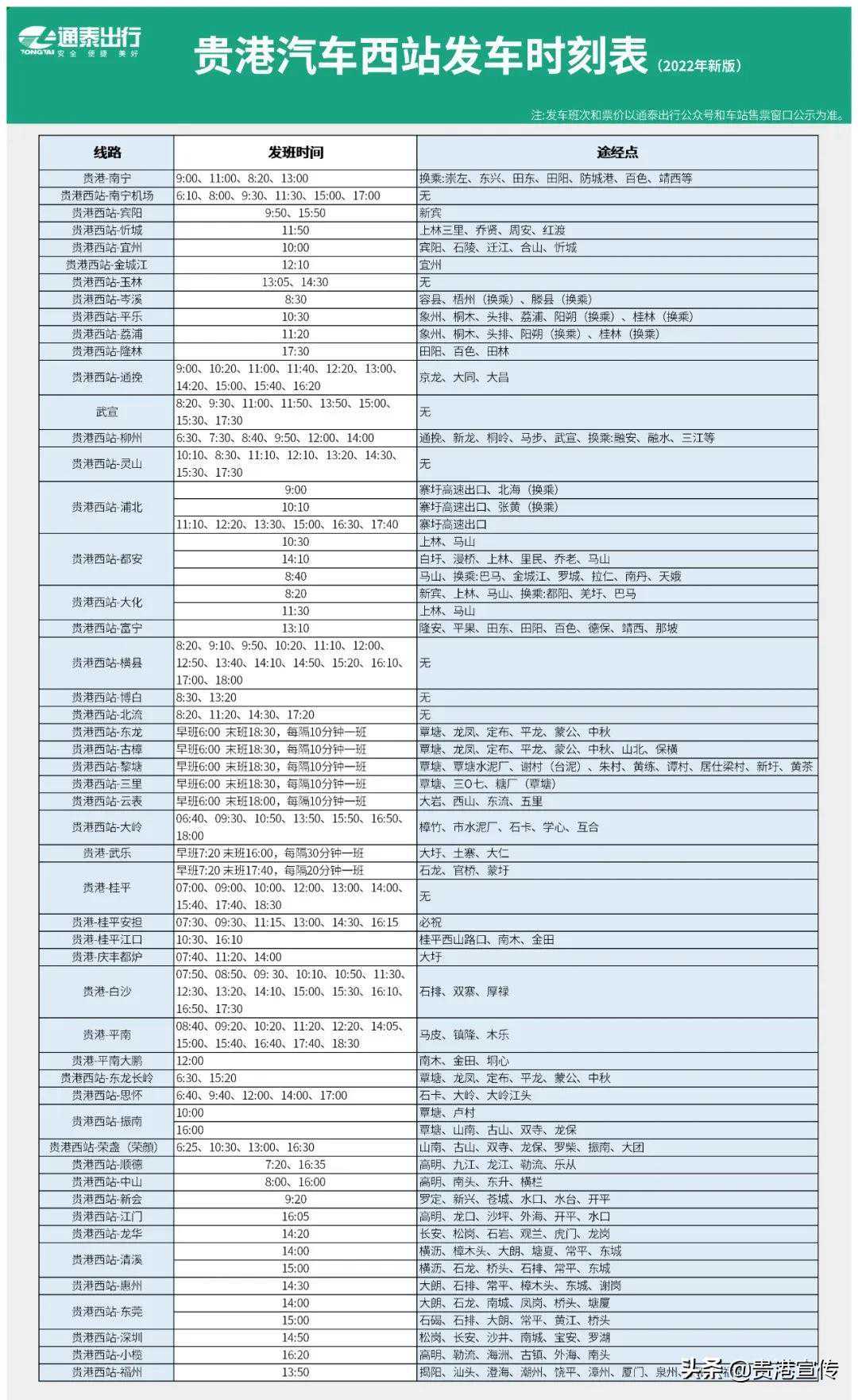 贵港各大汽车站班线信息以客运站当天公示为准。