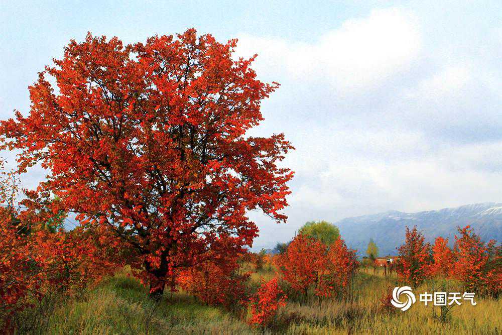10月10日,青海黄南州泽库县麦秀林场,叶片火红,诉说着秋天的风采。(图文/缐得娟王宏钰)