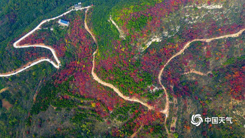 10月23日,河南汝州紫云山,漫山遍野彩叶斑斓,空中俯瞰壮美异常。(图文/黎新民)