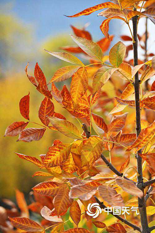 10月17日,秋色已悄悄爬上枝头,北京城区街头的树叶已初露秋韵,红色、黄色十分好看。(图/中国天气网王晓)