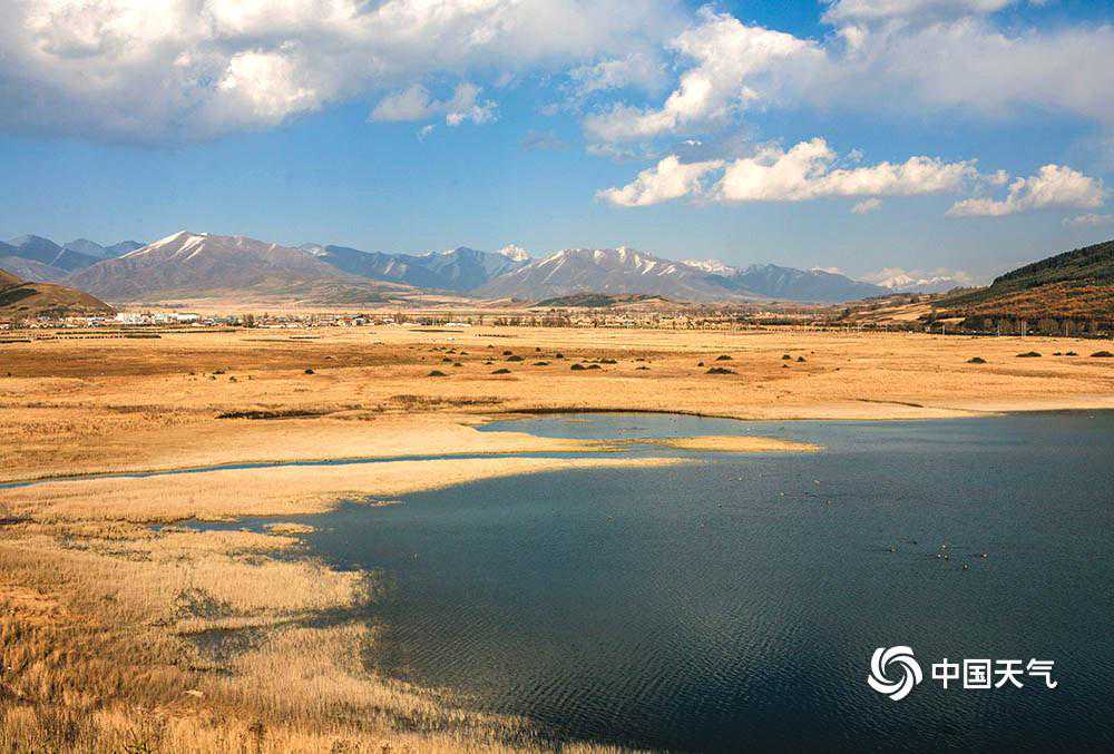 10月24日,青海海东市互助土族自治县南门峡镇磨尔沟,蓝天、白云、金色大地,交织成一幅美丽画卷。(图/文赵海梅)