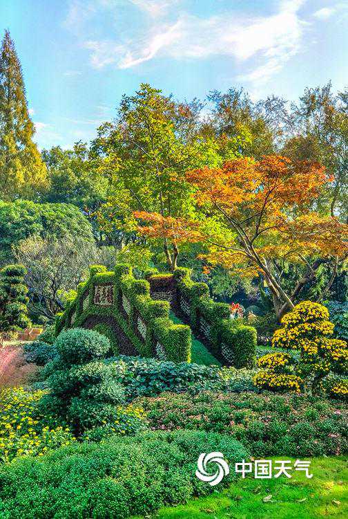 10月22日,江苏无锡梅园。无锡梅园是第14届中国菊花展览会无锡分会场,这是表现无锡市鼋头渚景区长春桥的景观。(图文/曹风增)