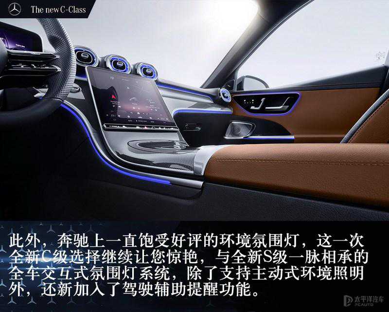 而2月23日,全新一代梅赛德斯-奔驰C级(第五代;W206)轿车横空出世,最新一代的家族式设计语言,内饰风格延续了S级,造型更激进年轻,各种花样繁多的科技配置成了主角,而动力上全系告别了V6/V8引擎,转而根据配置的不同搭配48V电机和强混电机。