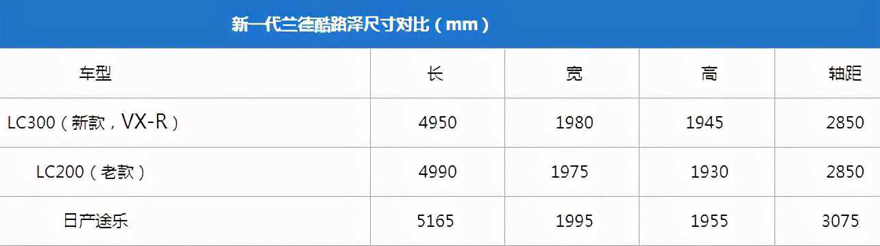 通过数据我们可以看到,LC300的VX-R顶配版本的长宽高分别为4985/1980/1945mm,与老款大致相同,特别是轴距则保持一致,因此我们可以推断LC300的车内空间表现将与现款车型(LC200)大致相同。而入门版的GX长宽高为4950/1980/1945mm;GR-S(运动版)长宽高分别为4965/1990/1945mm。此外,新车的离地间距、进近角和离开角均保持不变。