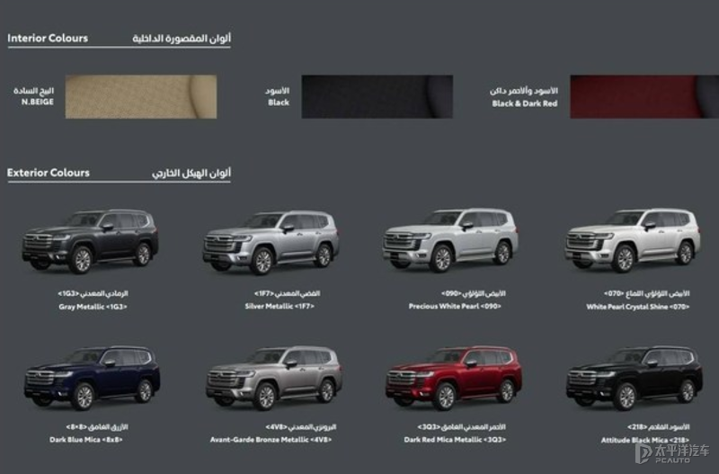 车身配色上,新一代兰德酷路泽有8种不同的车身涂装,包括白色、红色、黑色等,以及三种不同的内饰配色,包括浅米色、黑色、黑/红色。在整车的外观以及内饰配色方面拥有丰富的选择。