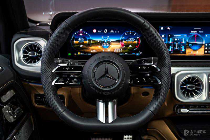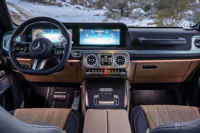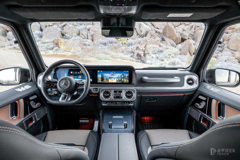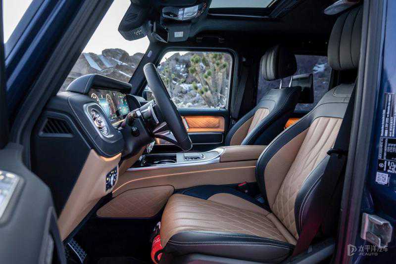 在配置上标配双12.3英寸高清显示屏,中控显示屏支持触摸;MBUX高端后排娱乐系统为后座乘客提供2块11.6英寸高清屏幕。新奔驰G500搭载升级的Burmester®3D环绕立体声音响系统,其优化扬声器布局、新增6个声道,车顶内衬也增添一颗带氛围灯的扬声器,搭配杜比全景声。