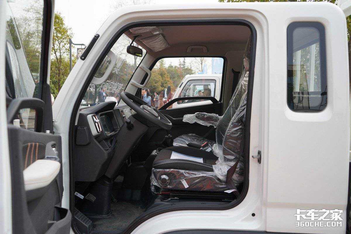 最后就是驾驶舱,实拍车型采用排半驾驶室,有其他用车需求的卡友也可以选择单排、双排等不同类型驾驶室。那既然是排半驾驶室,自然在驾驶舱后面布置有一个尺寸尚可的卧铺。同时该车的座椅支持放平,从而进一步扩大了卧铺的宽度,休息起来也更舒服。