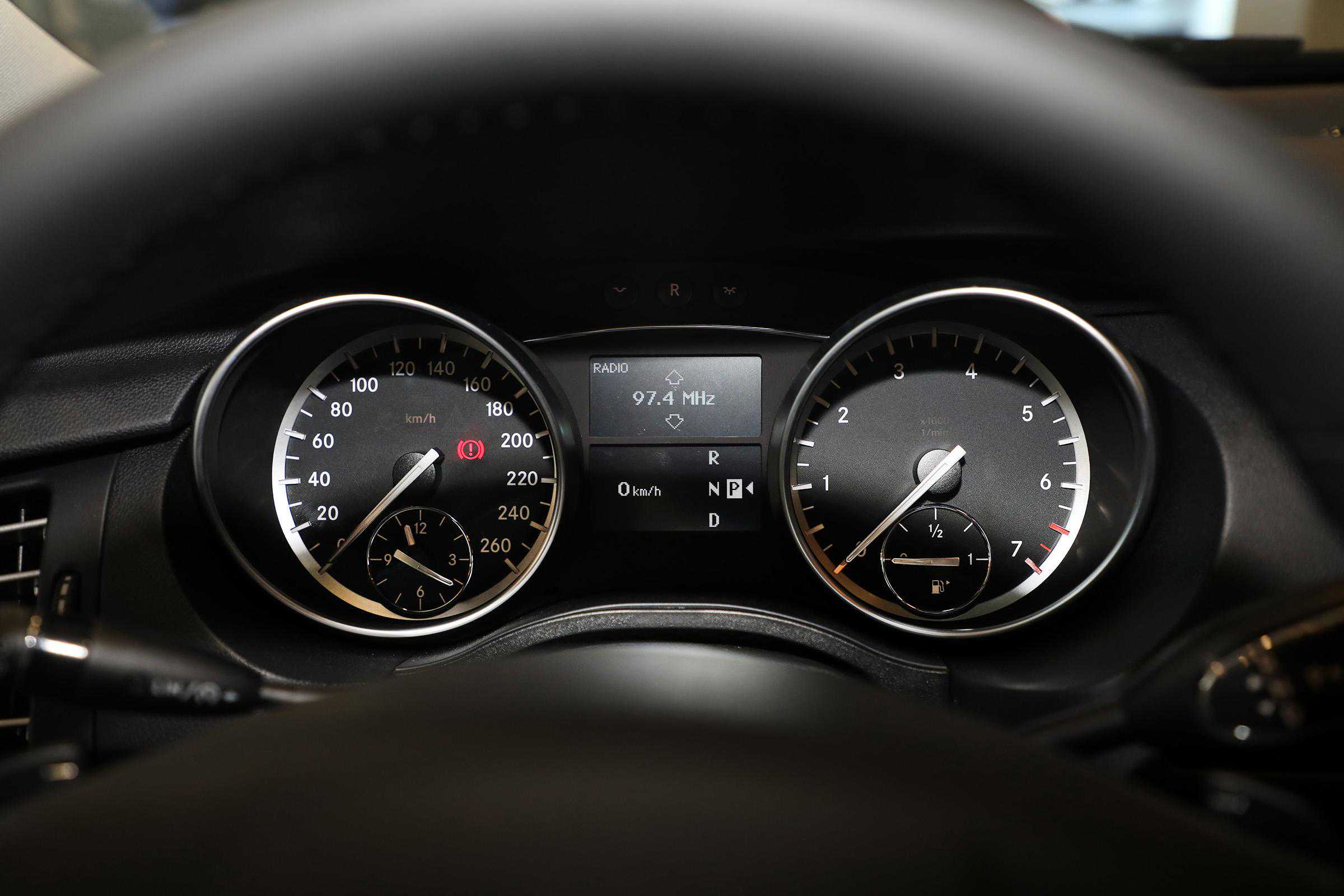 奔驰R级采用了机械仪表盘,显示效果清晰,做工扎实。