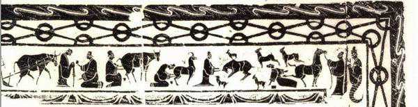在先秦时期,羊就已被用于祭祀和日常生活,汉代延续了这些风俗。羊常被描绘在画像石上的庖厨、狩猎、车骑、甚至乐舞中的建鼓图像中,还有一类专门表现牧羊的图像,更是栩栩如生地描摹了汉代养殖羊群的情境,这类画像石在山东、陕西绥德多见,应是当地畜牧业与经济发达的写照。
