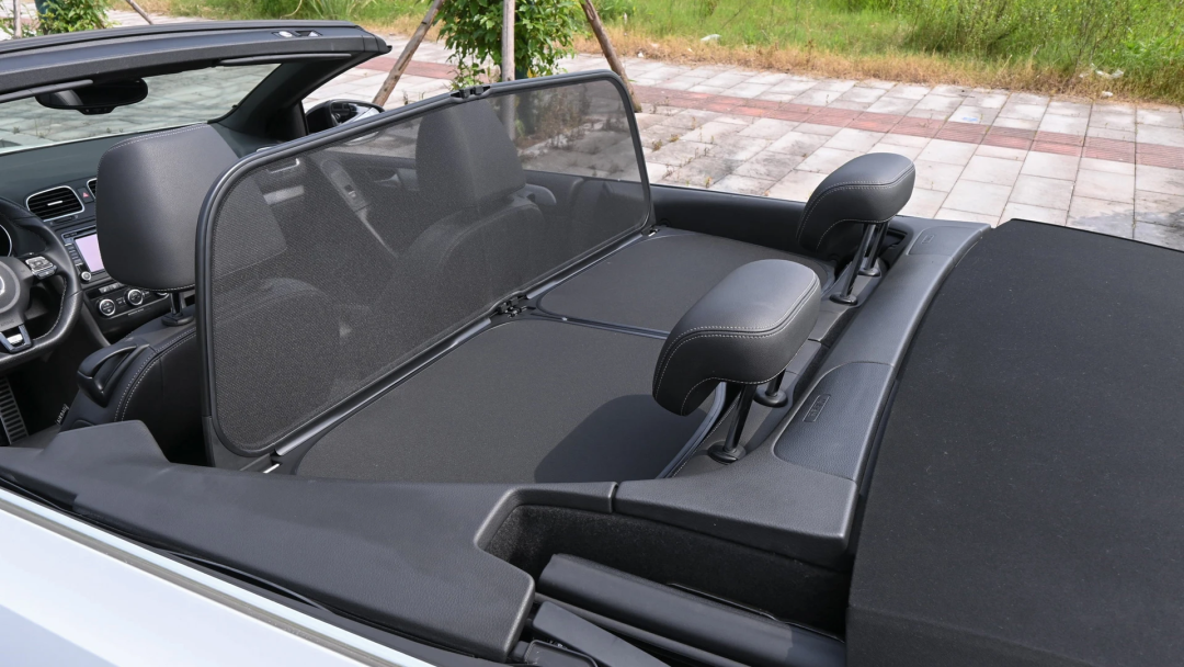 后备箱里原厂的遮风板还在,看干净程度应该是没怎么用过。装上它在敞篷时升起车窗,几乎不会有风吹进车内,这样副驾妹子刚做完的发型就不会被吹乱了,据说遮风板还能降低一点车内噪音,这一点我倒是没有太明显的感觉。