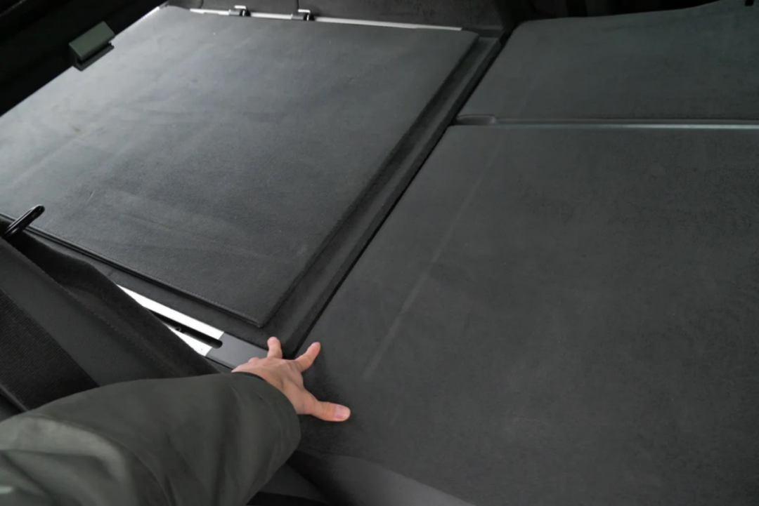 而且,椅背和尾箱底盘上植绒的质感,又密又厚实,品质感没得说。