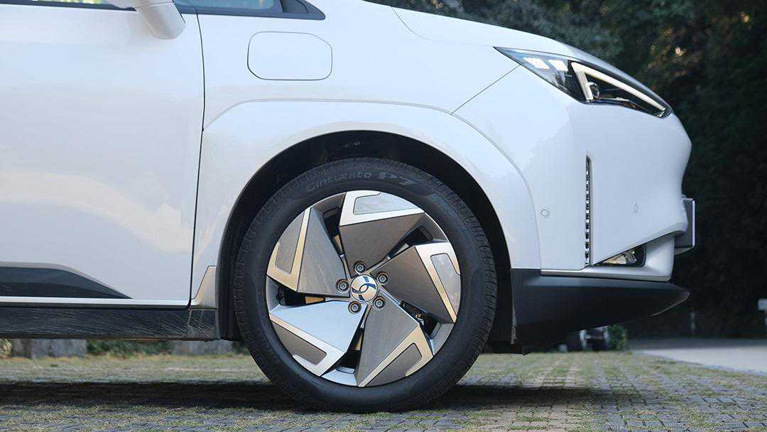 而且从侧面就能看到,这是一辆空间利用率极高的SUV,4.6米的车身上,车轮尽量被放置到四角,还有着短小的车头车尾,将空间更大限度地留给座舱。新车采用的是215/50R18英寸轮胎,轮毂带有空气动力学设计,能为续航提供一份助力。
