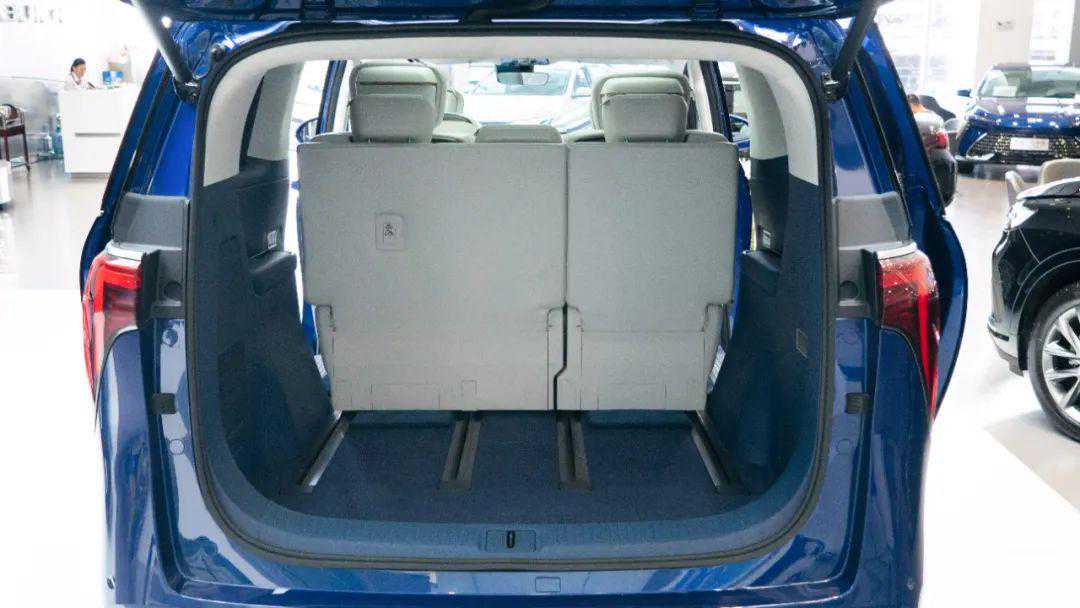 7座版的另一个优势体现在行李空间的拓展上,共用轨道的优势也在这时候体现出来,在第三排没有乘客的情况下,可以电动进行折叠,从而获得1901L的后备箱空间,且地台平坦没有明显凸起,在有大尺寸载物需求的时候也得心应手。