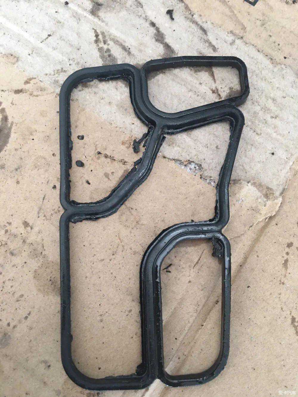 机油散热器漏油,时间长底座垫橡胶老化,弹性不足,需要更换