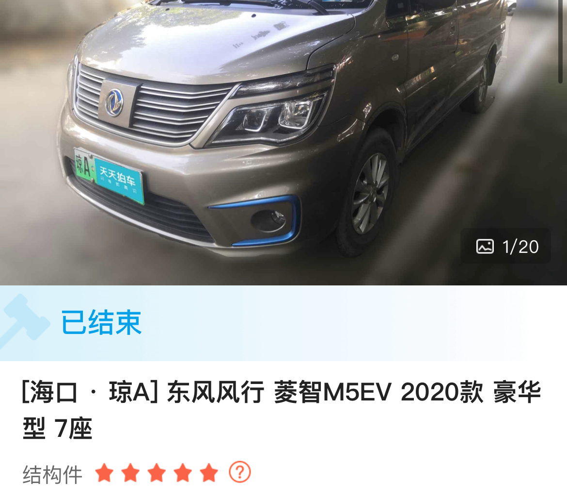柏先生介绍,他是一家深圳二手车行的合伙人,前段时间,他在“天天拍车”平台看中一款东风风行菱智小货车,准备拍下这款车用于翻新售卖。根据平台页面显示,该车车况显示为“准新”,仅内饰和外饰有少量刮痕。因为车辆所在的天天拍车门店在海南,因此,他特意在平台上下单门店再次复检,复检结果显示车辆没有重大问题。于是,柏先生以64600元拍下这辆车,当时这款车的新车指导价为16.289万。